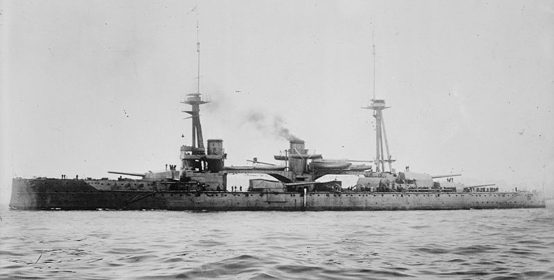 The last British 12" ships were the Colossus class, a pair of ships very similar to Neptune. The main change, for reasons that are completely baffling, was to eliminate the mainmast and move the foremast back behind the funnel, causing the top to be nearly uninhabitable. The 1909-1910 program was originally supposed to be two battleships and one battlecruiser, but British intelligence thought they detected a major increase in the rate of German construction, and a total of eight ships were ordered that year. The other ships were of a later generation, with 13.5" guns and all-centerline turrets, and will be our subject next time.