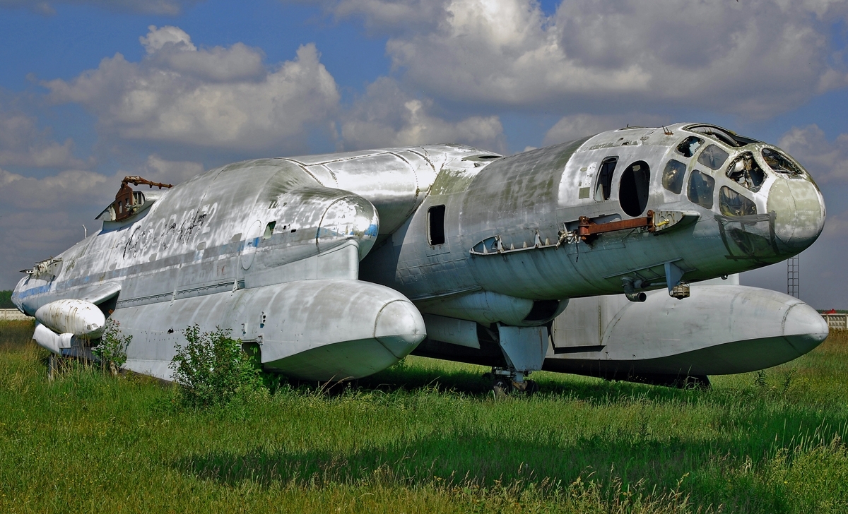 The development of the ekranoplan as more than a theoretical curiosity is largely due to the efforts of one man, Rotislav Alexeyev, the leader of the Soviet Central Hydrofoil Design Bureau. Alexeyev had the expertise in both naval architecture and aeronautics to manage the ekranoplan project, and even served as a pilot during the test program, as well as the political acumen to get backing for it from both Nikita Khrushchev and Defense minister Dmitry Ustinov. After a number of test vehicles in the early 60s, authorization was given in 1963 for a large-scale prototype, known as KM, although it is better known by the moniker given to it by Western intelligence services, the Caspian Sea Monster. This was a result of the massive size of the vehicle, 92 m long and weighing 544 tons, the largest and heaviest airplane built to that point.6 In cruising flight, at a height of between 4 and 14 m, it was propelled by a pair of engines mounted in the tail, but takeoff required eight extra engines mounted in a row above the nose, with their exhausts directed downward to form an air cushion under the wing, easing the task of getting off the water. It's not clear what purpose an operational version of the KM would have served, and the prototype was destroyed by a crash in 1980.