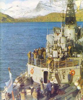 Argentine provocations began on South Georgia in March of 1982. An Argentine scrap metal merchant had secured a contract to remove old equipment from the whaling station at Leith Harbor, and requested the Argentinian Navy (ARA) to provide transport, as was normal in the Southern Ocean. Unfortunately, the ARA’s leadership was the most determined to have a war, and they landed on South Georgia without proper clearance from the British authorities. Besides the scrapping party, Marines were sent ashore, and they raised the Argentine flag. This drew protests from the British, and a group of Royal Marines were sent ashore by Endurance to provide protection for the teams from the British Antarctic Survey stationed there.