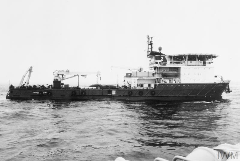 3 An amusing sidenote was also going on at South Georgia at this time. The Argentinian "scrap metal merchants" who had invaded the island had actually brought a lot of metalworking supplies with them, which were requisitioned by the British and used to equip the oilfield support vessel-turned-repair ship Stena Seaspread. ⇑