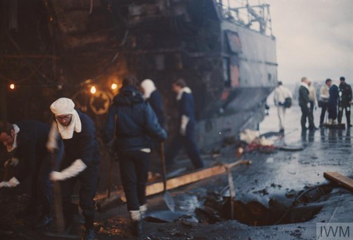 Damage control aboard Glamorgan