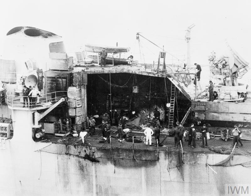 4 Some of this is because Glamorgan was an early-60s County instead of a much later Type 42. She was more sturdily built than either Sheffield or Atlantic Conveyor, which probably contributed greatly to her survival. ⇑