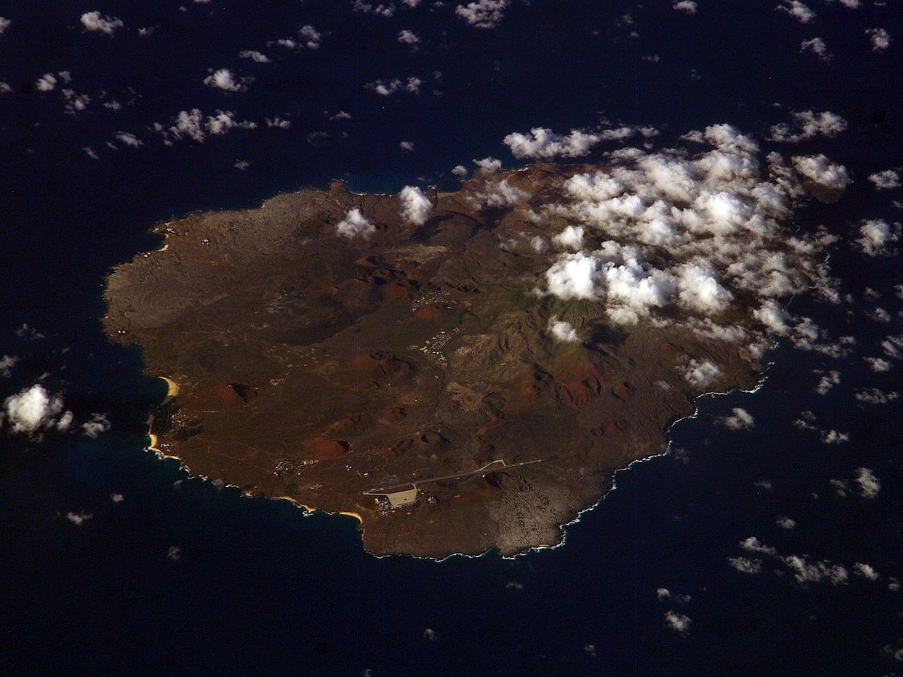 Ascension viewed from the ISS, with Wideawake at the bottom