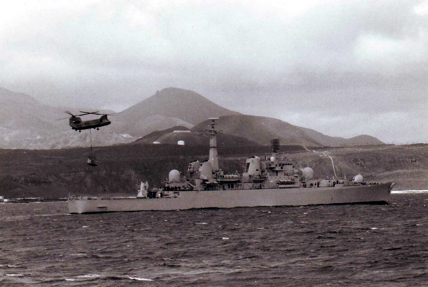 The port facilities they had to deal with were, if anything, worse than the rest of Ascension. A single stone jetty at the capital, Georgetown, was the only way on and off the island through the heavy swells of the Atlantic. The fleet, wanting to pick up extra equipment and supplies flown out to Wideawake, had to anchor offshore and ferry it out in nets slung below their helicopters. Throughout the entire campaign, helicopters performed a vital logistical function. The destroyers and frigates that sailed from Gibraltar had been stored at least partially by helicopter, and they allowed the transfer of personnel and supplies between ships and to shore much more easily than had been the case in previous wars.