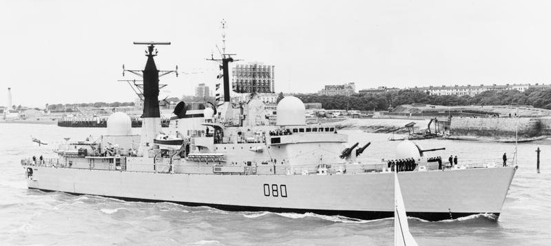 Sheffield with Sea Darts on the twin launcher between the 4.5" gun and the bridge.