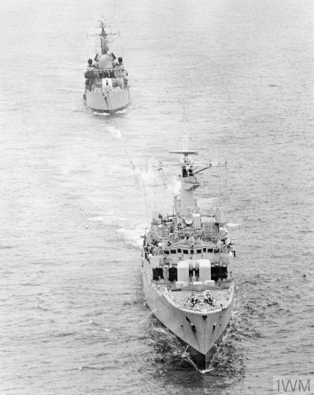 Despite the efforts of all three ship's crews, by 1800, four hours after the attack, the writing was on the wall. The last generator had died, the spreading fires had done enough damage to remove any chance of bringing the ship back into action without a full refit, and now menaced the magazines for the Sea Dart and 4.5" gun. More than that, the weather was perfect for another Argentine air attack, and Captain Salt of the Sheffield worried that he was tying up too many of the Task Group's assets. 266 men were taken off, leaving twenty of their shipmates behind forever.