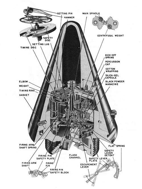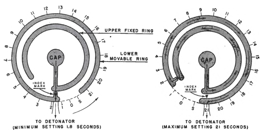 2 Also worth a brief mention are ignition fuzes, designed for payloads like starshells which burned rather than exploding. The principle of the mechanism was the same, but details were different to allow the contents of the shell to light instead of being blown up. ⇑