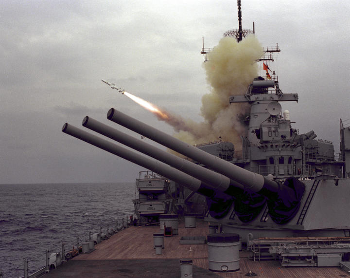 The port Harpoon quad launchers on Iowa. In the 80s reactivation, four quad launchers were fitted, 2 port and two starboard. Note the flame deflectors behind the launchers in the lower right.7