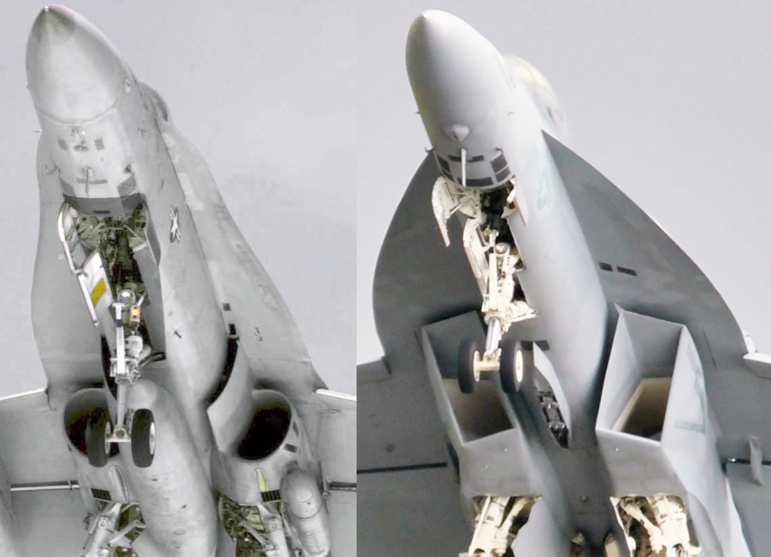 The Hornet and Super Hornet clearly show their different intakes and Leading Edge Extensions