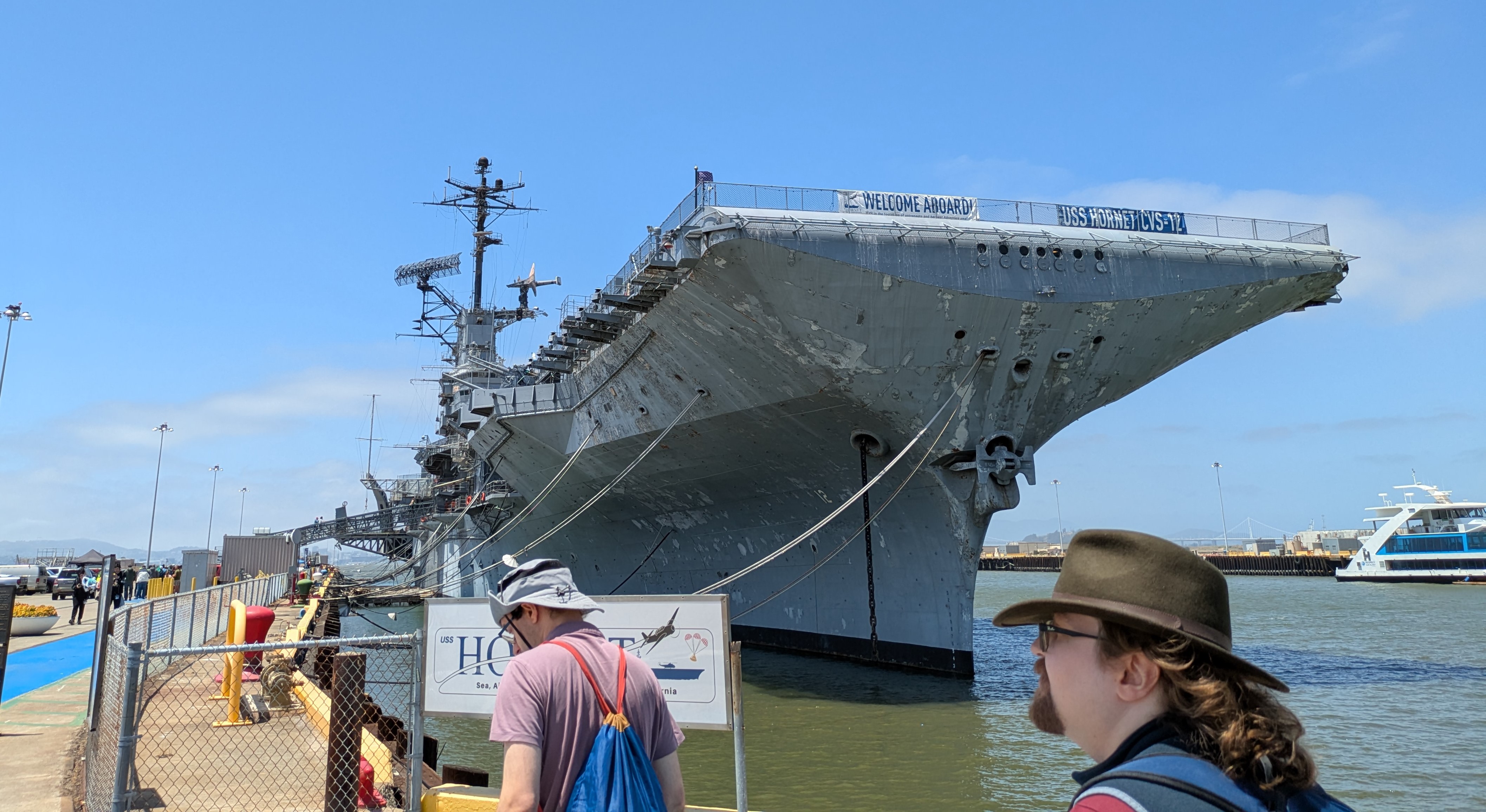 I attempted to visit Hornet while in the Bay Area as part of the DSL meetup in May 2025. Unfortunately, when we arrived, there was a long line to get onto the ship, as they were hosting a furry convention1 that day. Now, I have nothing against museum ships doing unusual things for money, and I'd heard of CarrierCon, a more general fandom convention hosted aboard Hornet, but that was a few months ago.2 The real problem was threefold. First, one member of our party had checked their website that morning, and not seen anything about this, so it was a unpleasant surprise to find the ship full of people, with an hour-long line. Second, upon arrival we were told that admission would require a con pass, which was $50 instead of the normal $25. Third, it was Memorial Day weekend, and while I'm sure that this wasn't one of their busier weekends,3 doing a convention of any sort4 on that weekend feels tacky and a bit disrespectful.