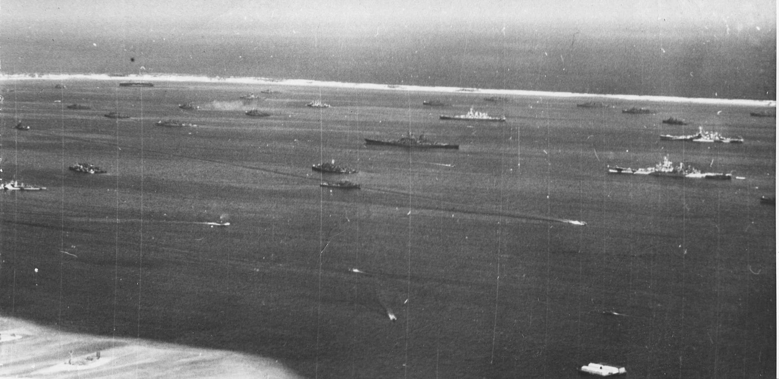 Iowa (front right) in the lagoon of Majuro Atoll, 1944