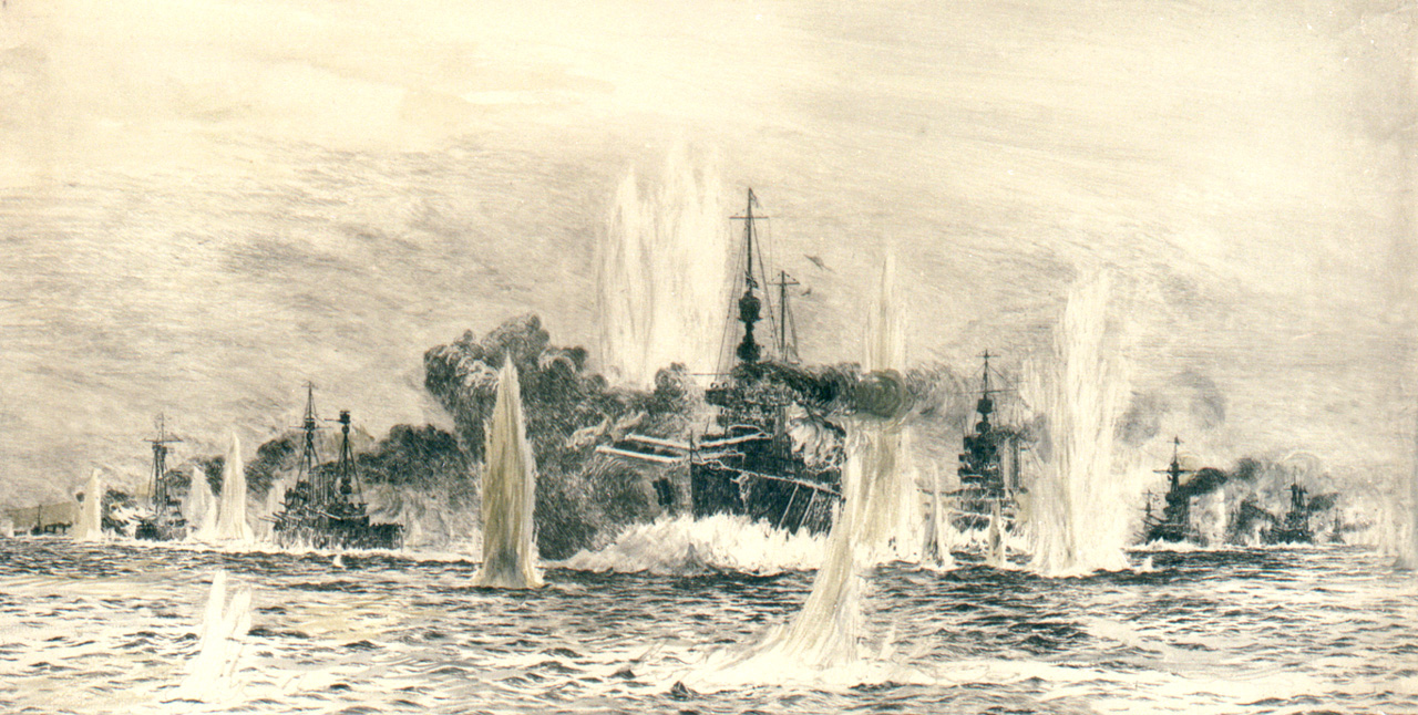 The British Grand Fleet and German High Seas Fleet had been facing off across the North Sea since the beginning of the war, but in May of 1916, they finally met in battle. The British battlecruisers under David Beatty pursued their German counterparts under Franz von Hipper south after their first encounter until they met the body of the German Fleet, commanded by Reinhard Scheer. They turned north, and lead the Germans directly into the teeth of John Jellicoe, with the British main body. Jellicoe timed his deployment to perfection, placing his line across the Germans and crossing their T. Scheer saved his force with a swift turn away.