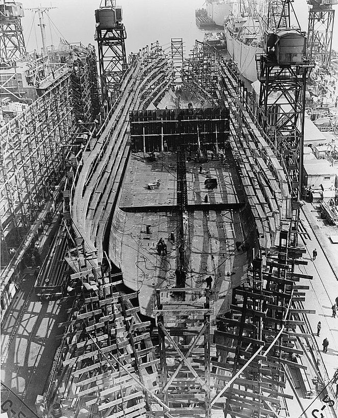 Day 2: Keel plates are welded on the slip at Bethlehem Steel's Fairfield yard