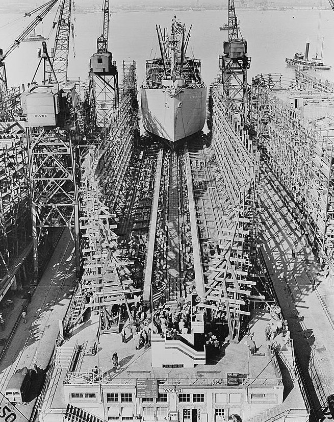 One of the great battles of the Second World War was fought in the shipyards. Moving the products of American industry to where they were needed to support the war effort would take ships, and when the US entered the war, those were in short supply. The centerpiece of this effort was a new design of freighter, intended to be easy to build and operate, dubbed the Liberty Ship. Existing shipbuilding capacity was insufficient, and through several waves of expansion, US industry geared up to produce 24 million tons of shipping capacity throughout 1942-1943.1 Ultimately, they would produce 2,708 Liberty Ships, in addition to about 3,000 other vessels built for the Maritime Commission, the agency charged with supply merchant ships for the war effort.