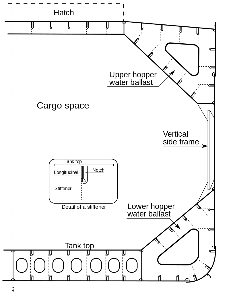 A midship section of a typical bulk carrier