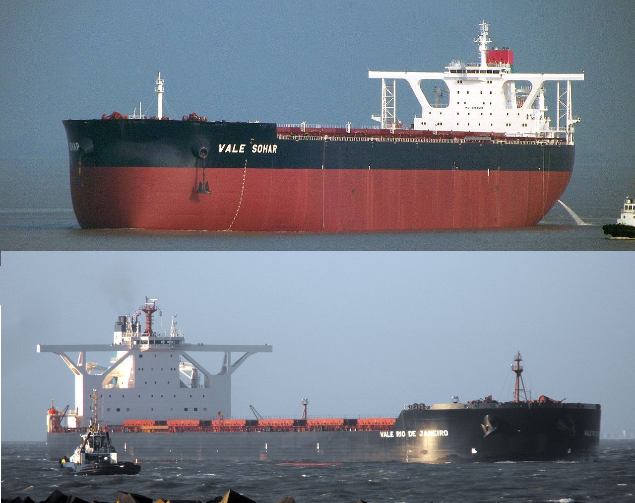 Sister ships Vale Sohar and Vale Rio de Janeiro provide a graphic demonstration of the change in draft between unloaded and loaded bulk carriers