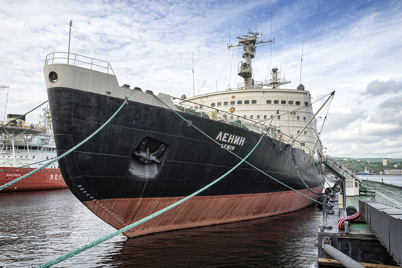 The Soviets, who had more incentive than anyone to build icebreakers, took the next step in the late 50s, commissioning the Lenin, the world's first nuclear icebreaker. This proved an ideal match, as nuclear power allowed these icebreakers to operate at high power indefinitely, greatly simplifying logistics in the high Arctic. Unfortunately, Lenin suffered two major nuclear accidents in the late 60s, and her original reactors had to be blown out of the ship with shaped charges for disposal in deep water, to be replaced with new ones. She remained in use until 1989, when her hull had apparently worn too thin for further service. Today, she is preserved as a museum ship in Murmansk, the one museum ship I don't want to visit. Lenin was followed by six more large nuclear icebreakers, one of which became the first surface ship to reach the North Pole in 1977, and two smaller ones specifically intended for work on the rivers of Siberia. Three more of these vessels are currently under construction and are expected to enter service soon. All are equipped with stern notches that allow close towing of other ships to aid their passage through the ice.