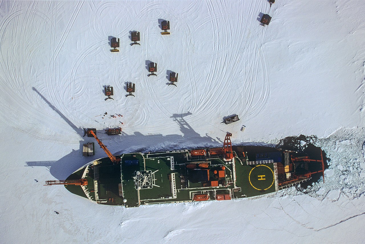 Polar Research Vessel Polarstern unloading supplies in the Antarctic