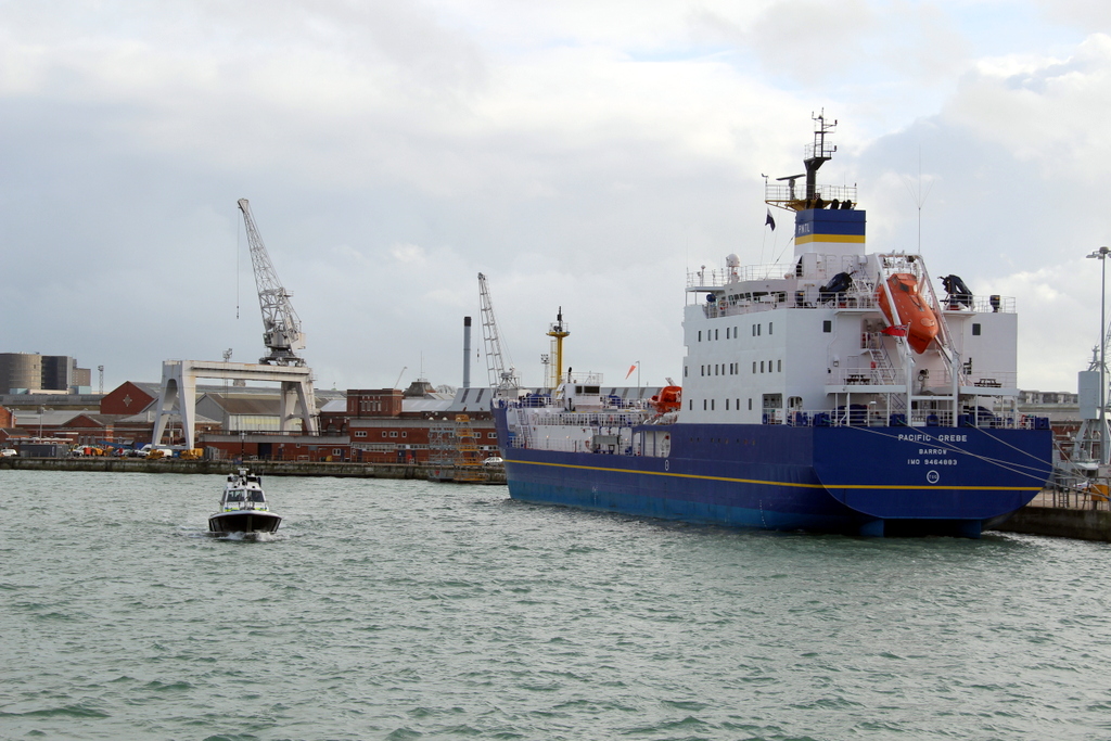 Many nuclear plants are located on the coast, and a small fleet of vessels exists solely to service them, transporting nuclear fuel in and nuclear waste out. These ships tend to be ro-ros, built to the highest standards and with extensive shielding for the cargo. A trio of nuclear fuel/waste carriers, operated under the British flag, are the only armed merchant vessels I am aware of currently in service. Until the last few decades, the seas were seen as a good place for disposal of hazardous waste, and a number of vessels were built specially for this task. Many had clamshell doors in the bottom to make disposal easier, but stricter environmental regulations have seen this category of merchant ship disappear.
