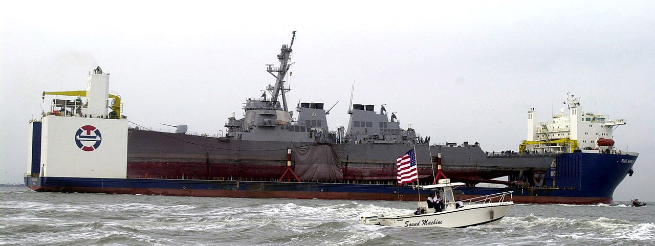 USS Cole is brought home aboard heavy lift ship Blue Marlin