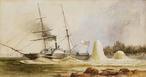 The first ship mined (as we understand the term today) was HMS Merlin, on June 9th, 1855. The ship, deployed to the Baltic as part of the Crimean War,1 suffered only minimal damage. The Russians had deployed primitive moored contact mines, tethered to the bottom, which detonated if a rod on the top was bumped by a passing ship. Interestingly, they were invented by Immanuel Nobel, father of Alfred Nobel. In response, the British initiated the first minesweeping operation a few days later, grappling the mines and hauling them up. Remote-controlled mines, detonated from shore, were also used, but proved less successful than the contact mines.