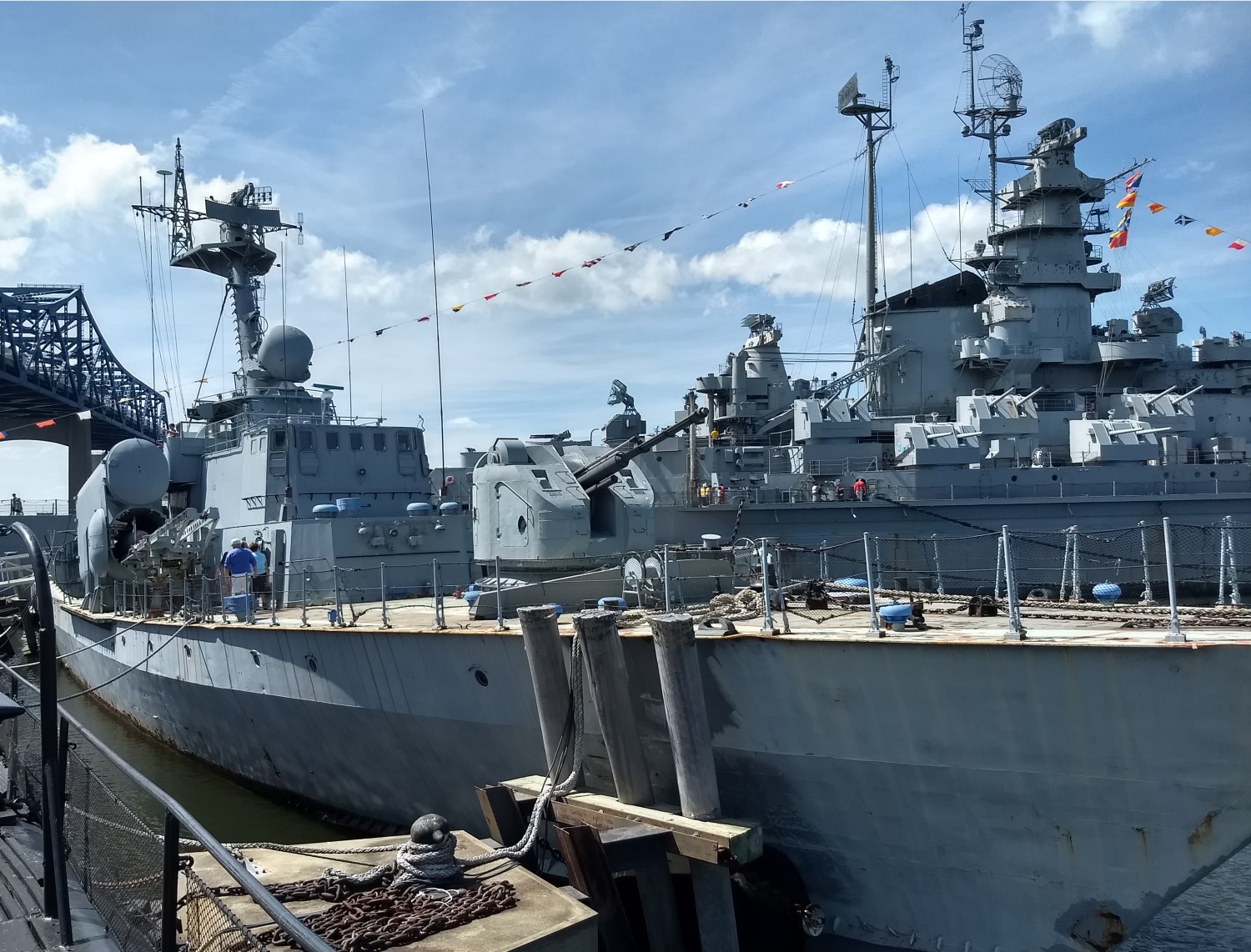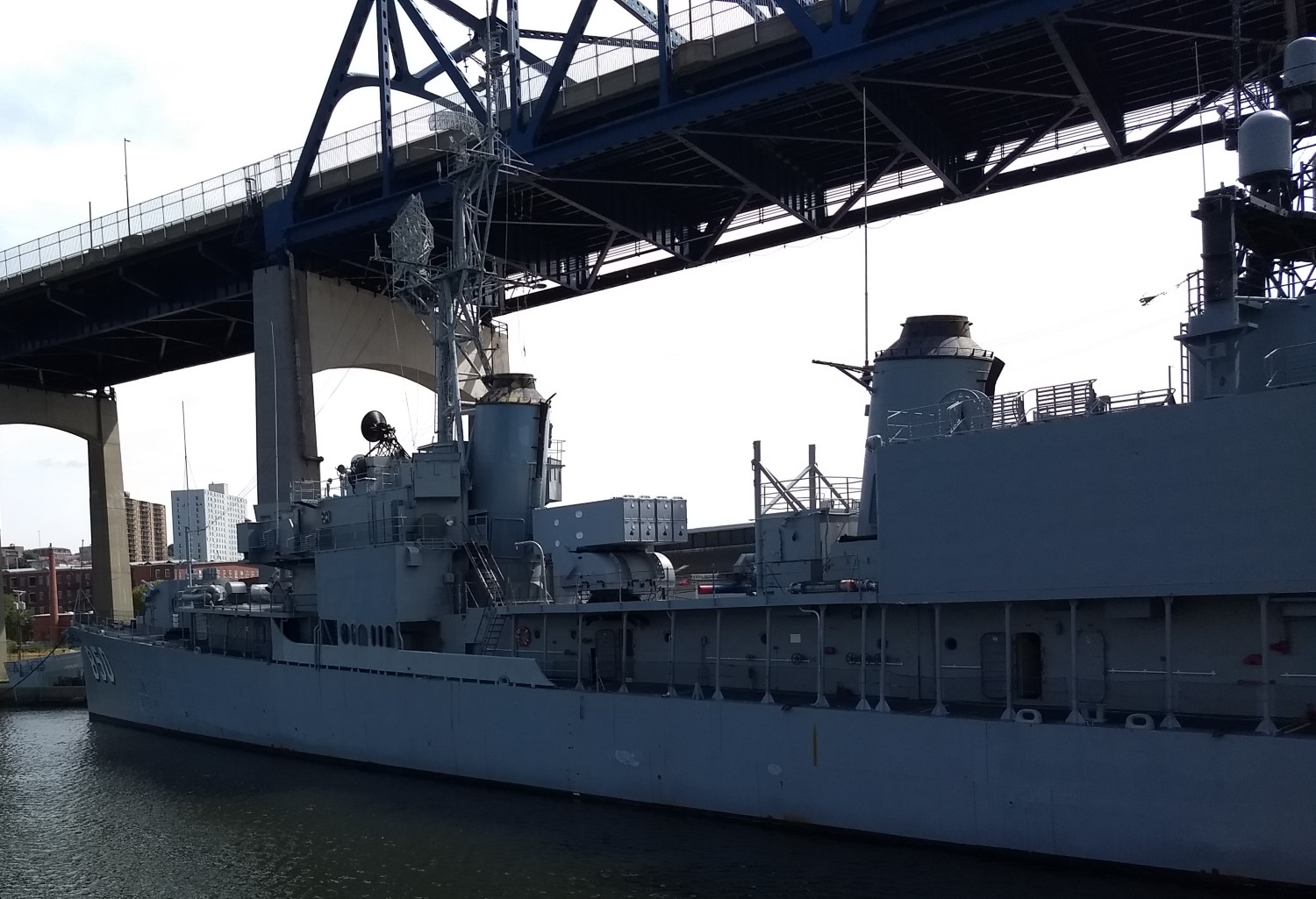 While the special tour I got made the visit particularly impressive,3 Massachusetts would have been well worth seeing without it. Much more of the ship was open than on Iowa, and she was in something reasonably close to WWII configuration,4 so that was very neat to see. Particular highlights included the inside of Turret III, the barbette for Turret II, and the engineering spaces, all of which were displayed pretty well. The signage throughout was pretty decent. It wasn't perfect, but it was definitely a major step up from that aboard Alabama. A lot of the spaces were glassed off, which I don't like, but I can see why they did it. They'd definitely done a lot to restore the ship, given the condition they got the ship in,5 although some spaces had been gutted that I (and the crew I was with) wish they hadn't. There were a few hidden gems, such as a Fritz-X guided bomb, an important weapon in the downfall of the battleship. There wasn't any signage about this, though, and for some reason it's painted the blue of a training weapon. Another interesting thing they had was the nose of a shell they'd fired that was recovered from Casablanca city hall after bouncing off Jean Bart. I didn't do all of the exhibits on battleships in general and Massachusetts in particular, because I was more interested in seeing the other ships in the cove.