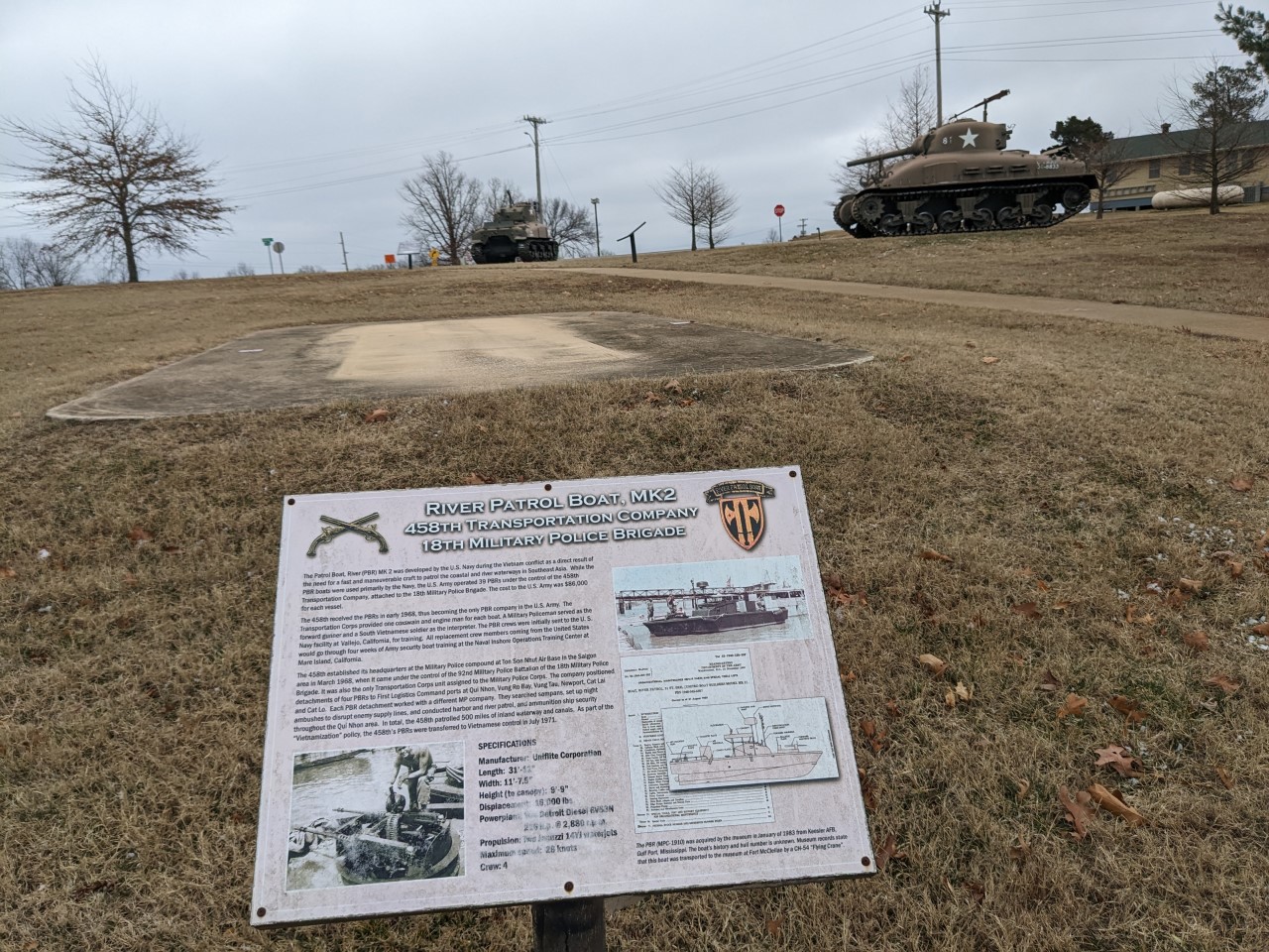 2 The museum was moved from Fort McClellan to Leonard Wood in the late 90s. The signage doesn't look that old, but I wouldn't be surprised if the text dated back to the previous museum, which may have been established in the 50s. ⇑