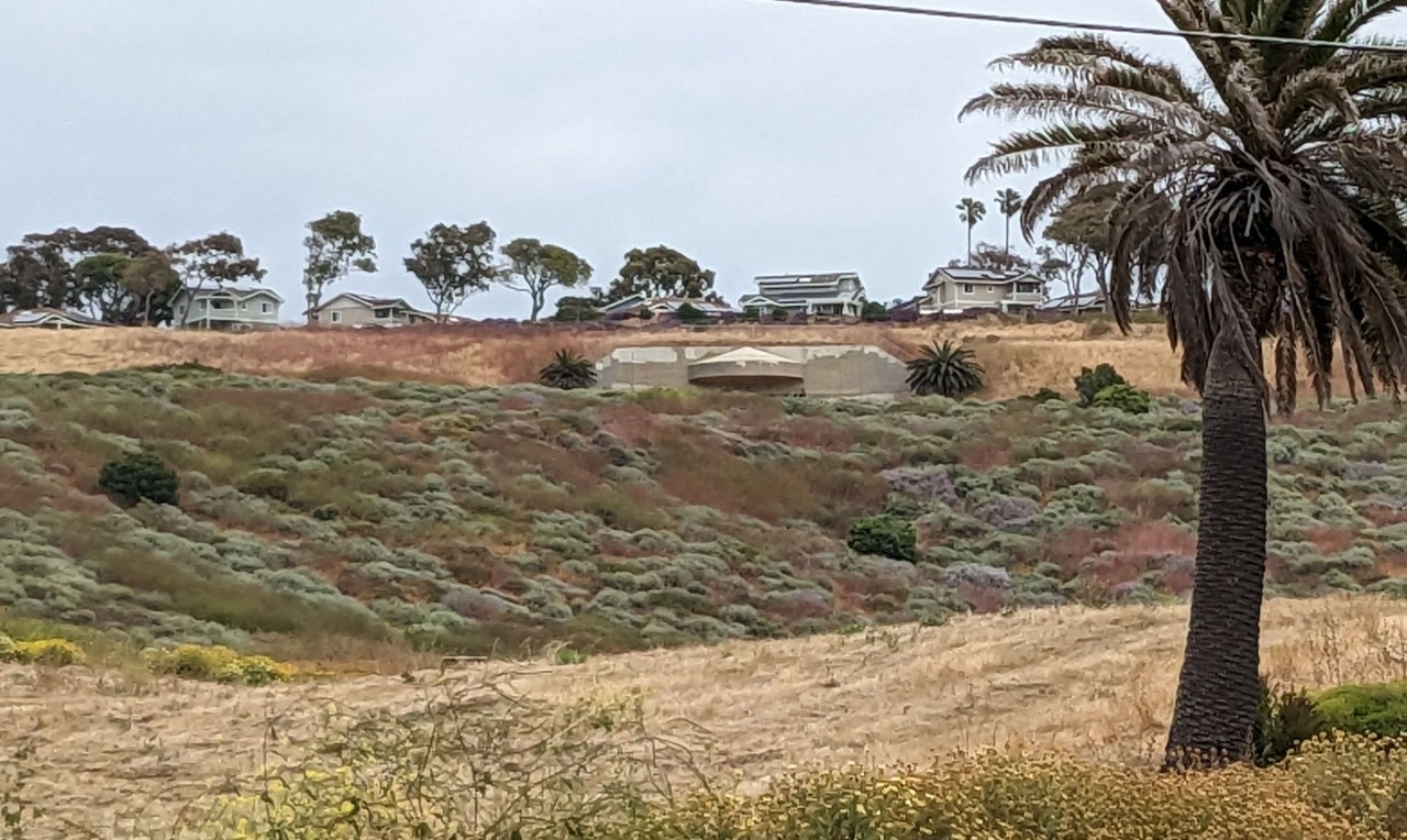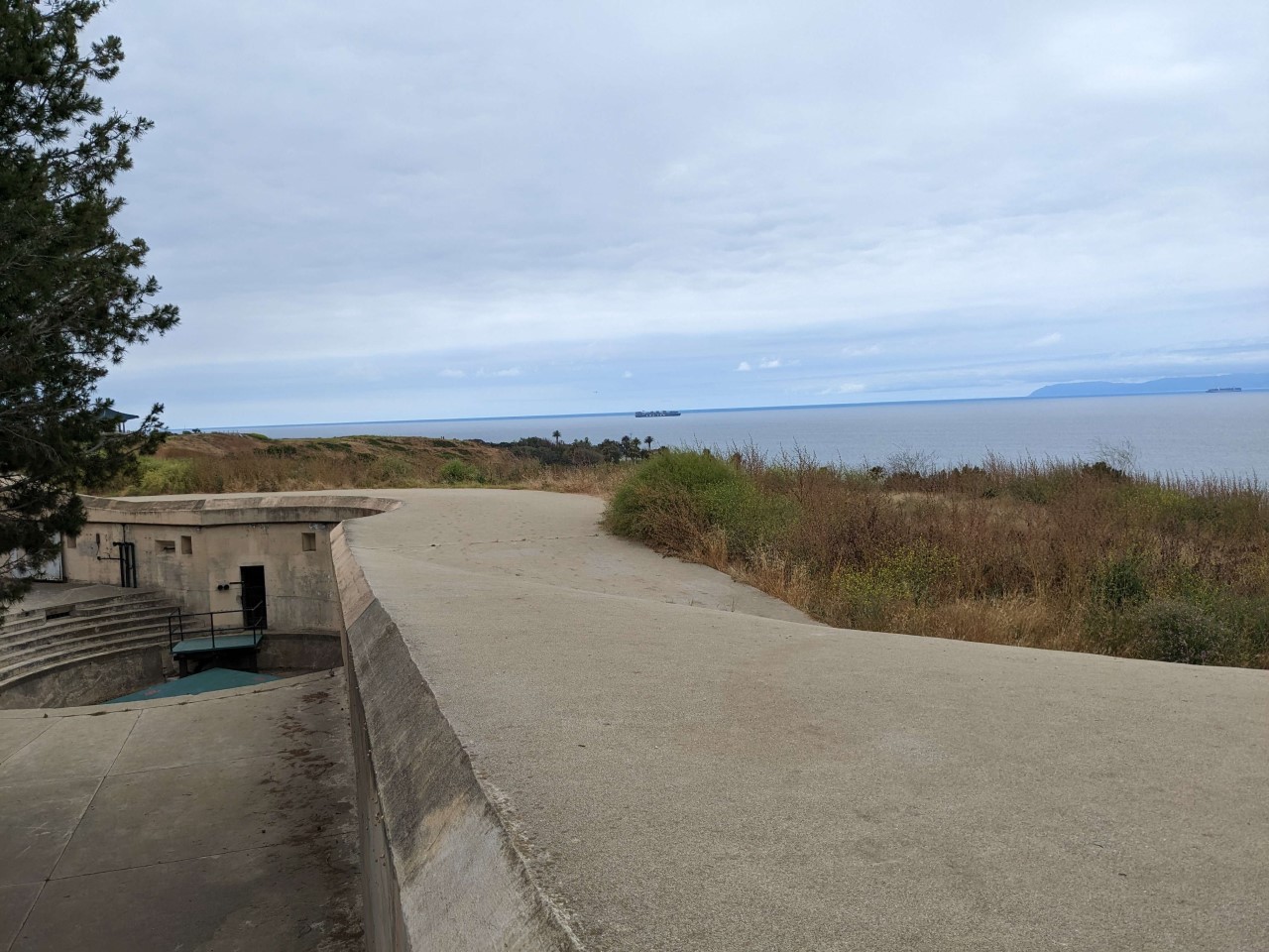 Further down the coast, the 16" emplacements are also accessible. It's part of White Point Nature Reserve, where you can also find the remains of a Nike battery. There are only two real problems. First, there is effectively no signage, so you need to know what you're looking at yourself. Second, while the Nike stuff is pretty close to the parking lot, the 16" casemates are well up on the bluff, and it's a hike to get there. The trail leading up is very steep, and besides being a lot of work to go up, I was afraid of falling on the way back down. There's not much left, just the concrete itself, although it's a nice hike and the views are lovely. On the whole, I'd only recommend this if you're really into coastal defenses or if you want to combine a bit of history with a moderately strenuous hike.