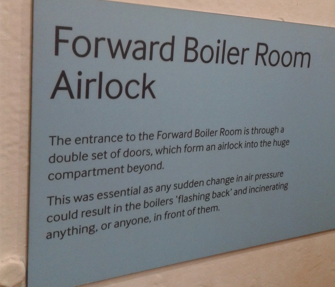 Probably the best part of the ship for me was the engine and boiler rooms. The machinery is no longer running, but the room imitates it well, with sound recordings, good signage, and a lot of machinery still in place.