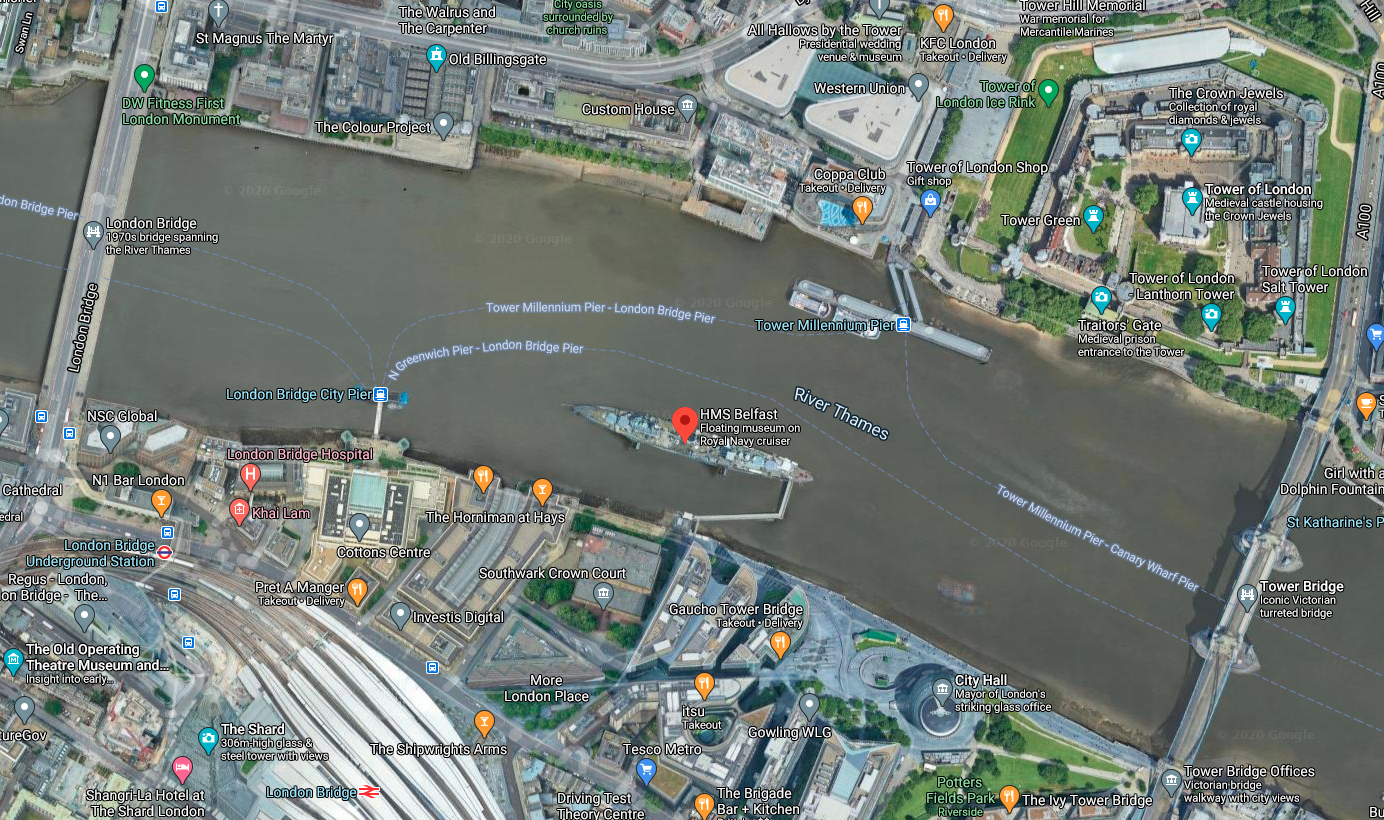 One of the things I planned to visit on our trip to the UK was the Portsmouth historic dockyard, whose review can be found here. But as we were wandering around London, I noticed a surprisingly large ship in the middle of the Thames. The World War II light cruiser HMS Belfast was preserved as a museum ship in basically the most accessible possible location for a museum, right in the heart of London.