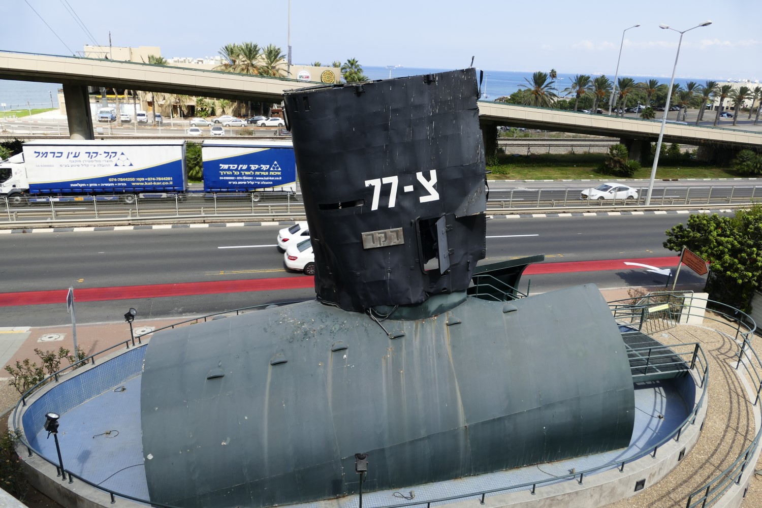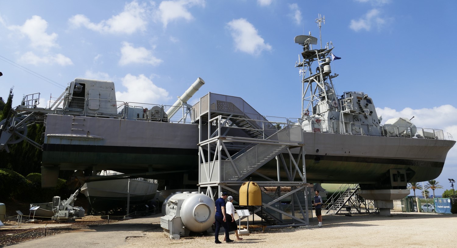 The museum is actually called "Clandestine Immigration and Naval Museum" — despite the biggest attraction being the navy (what with the sub on display) the museum and the objects on display explore the whole maritime history of the modern Israel — from ships used to ferry illegal immigrants during the times of the British Mandate to the formation of the independent Israel and its Navy to today. The main attractions are the Sa'ar 2-class missile boat Mivtach, submarine Gal, the salvaged sail of the submarine Dakar immediately outside the entrance to the museum, and Af Al Pi Chen, a clandestine immigration ship, built as a Royal Navy Mark 2 Tank Landing Craft in World War II. Apart from those there is a Navy museum, detailing the formative years of the Israeli Navy and various assorted vehicles or weapons — light commando craft, guns, torpedoes, missiles and so on.