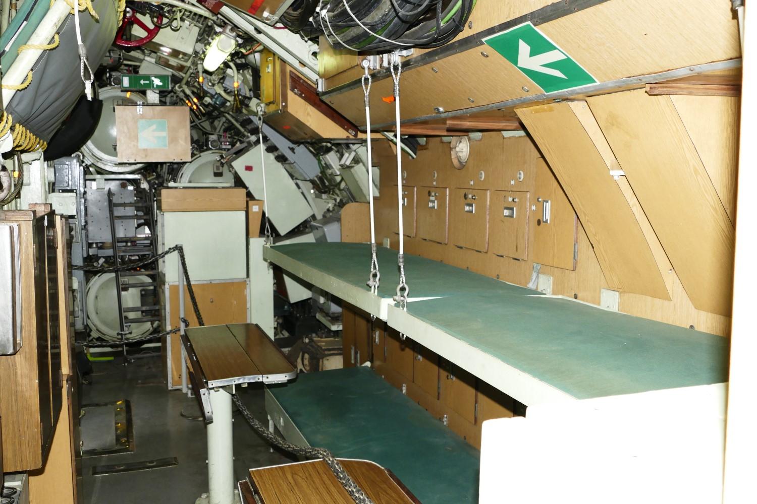 The interior of Gal. Note the top bunk can be folded down to form the back of a couch, and the torpedo tubes visible in the background.