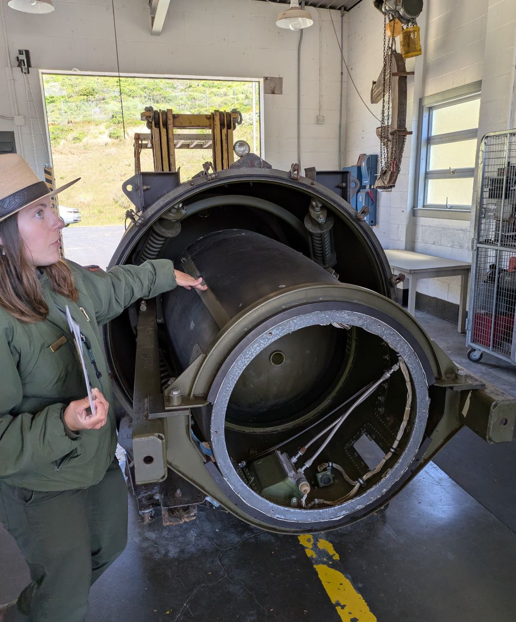 Today, the remains of the Nike program can be found across the country, mostly in various states of neglect. The only one that is being operated as a proper museum is SF-88, nestled in the mountains maybe 10 minutes from the northern end of the Golden Gate Bridge, although the route there involves going through a narrow tunnel that switches directions. Also worth noting is that the site itself has poor to nonexistent cell service. But it's entirely worth it, because they've done an excellent job restoring it, and the result is very cool to see. When you first arrive, you can see the assembly building and the old generator building, which they use as a sort of mini-museum. This is where the tour will start from, although if you're lucky (as we were) there might be a Nike veteran there to talk to while you wait. The tour, led by a park ranger, runs every hour or so, and takes a little over an hour. The guide will talk you through the process of running the site, including assembling the missile, taking it for warhead fitting and fueling (for the liquid-fueled Nike Ajax). They've moved radars and fire-control vans, which would have been on the top of a nearby hill, down into the battery, and you can actually go inside the vans and look at the 50s-era guidance equipment.