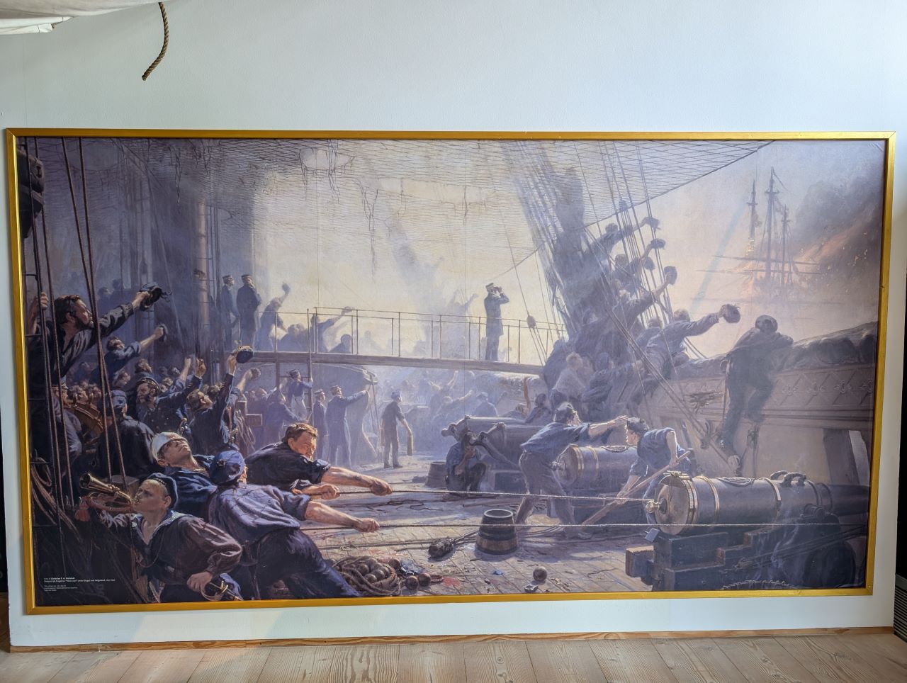 Painting on display at the museum, showing a scene from the Danish frigate Niels Juel, during the 1864 Battle of Heligoland Bight.