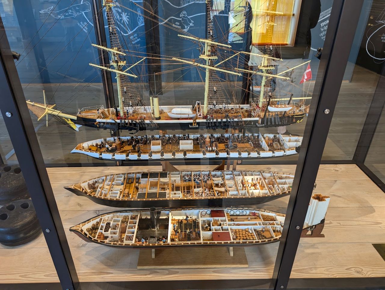 Some museums cater to an audience strongly interested in history, and/or technology. The Jylland museum, instead, directs a lot of its informational energy towards families. It tries to tell a story about life for the crew onboard, and gives a not-too-detailed account of key technical aspects. I personally would’ve liked to see more informational posters around the ship, with a bit more details, though. Instead, the museum offers you to download an app, which allows you to enter the number posted at different locations around the ship – after which, you’ll get to listen to a narration relevant to the part of the ship you’re in. I didn’t try it on Jylland, mainly because I’ve tried it in other museums, and frankly, I’ve disliked the experience every time. I’m a fast reader, so being forced to digest information at talking pace, and not having the option to skim a text to determine if it’s worth my time, is beyond my patience. Also, I don’t like walking around in a museum with a phone to my ear; to me, it ruins a little bit the social aspect of going there with somebody else. Still, I acknowledge that it’ll work for some people and it’s probably an easier and cheaper way for the museum to update their exhibit.