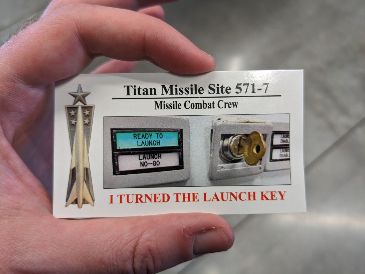 For the tour itself, you descend down through the main access system and the airlock that they used to enter the complex. Then it's into the main control center, where they requested volunteers. My hand was barely subsonic going up, and I was made the missile commander and a Captain in the Air Force. The guide walked through the day-to-day routine of the missile silo, as well as the procedures they would go through if a launch order came. I got to see the whole thing from the commander's seat, and at the end of the process, the deputy and I turned the keys. It was extremely cool, and I appreciate Cassander letting me do it.