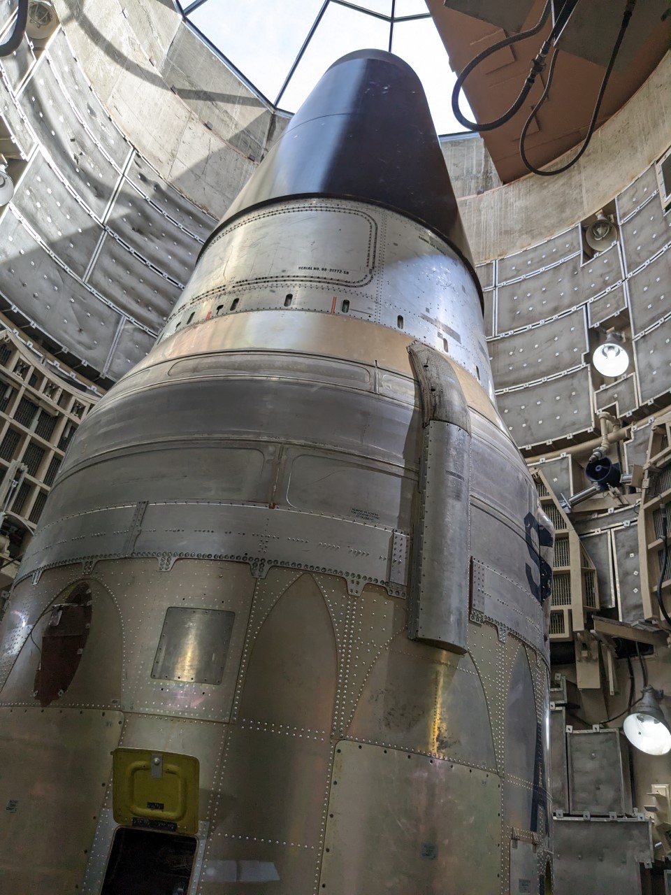 The tour starts with a briefing from the guide, and a short video outlining the Cold War, the American nuclear arsenal, and the mission of the weapon. "Peace through deterrence" is something they hammer home a lot, and rightly so. Our guide was extremely entertaining. He had actually been a missile crewman in the 70s and had a big personality. Unfortunately, this was not matched by any particular commitment to accuracy, and I ended up making a list of things to tell the group afterwards. Several of them said that they particularly enjoyed the real-time fact-check provided by my eyebrows. The biggest issue was a regular exaggeration of the destructiveness of the weapons involved, which as you might expect is a hobbyhorse of mine. In particular, he would give numbers that maybe corresponded to the 1 psi radius of a weapon as "total destruction", which is actually "broken window" levels of damage. Regrettably, I didn't bring my nuclear slide rule, but NukeMap worked just fine for the debrief.