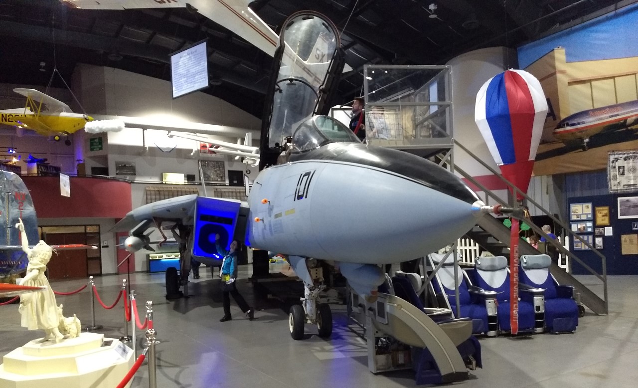 The museum wasn't great, certainly not in the same league as the Stafford Museum, but it's worthwhile if you're going to be in Tulsa anyway. The big draws are an F-14 inside the museum, with a ladder that lets you look right into the cockpit, and an MD-80 outside. The MD-80 is only available by tour, which are run every hour. It was donated by American Airlines after they found a crack in the tail section that was so bad they couldn't even get approval for a single ferry flight. I didn't realize that cracks could get that bad.