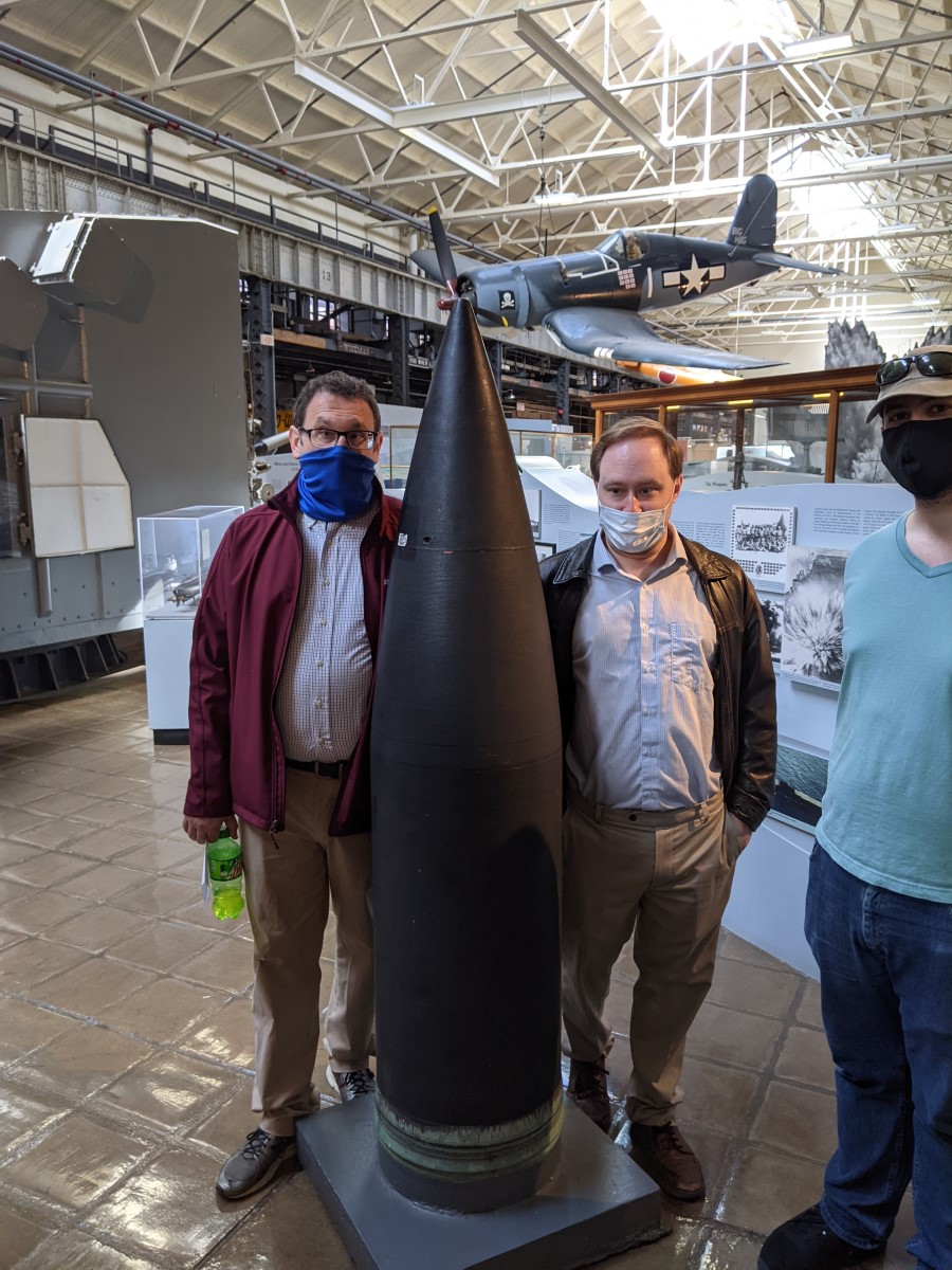 Unfortunately, due to my tendency to ramble and the rest of the group's absurd insistence that we get lunch at around 3, we ran out of time before we could get to the Cold War Gallery. We did hit the park outside, which had a 16"/50 Mk 2 gun, several shells fired by New Jersey during her Vietnam reactivation, a propeller bade from Maine, an old pressure sphere from the submersible Alvin, a 14" railway gun from WWI and most notably a 26" armor plate from Shinano that had been used for ordnance tests after WWII. It was all very cool.