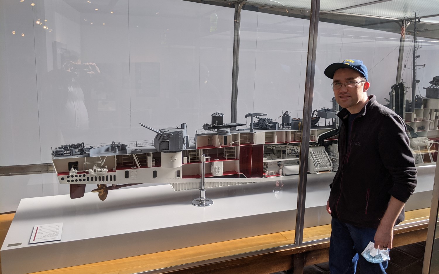 Me with a gorgeous sectional model of a Gearing or Sumner class destroyer
