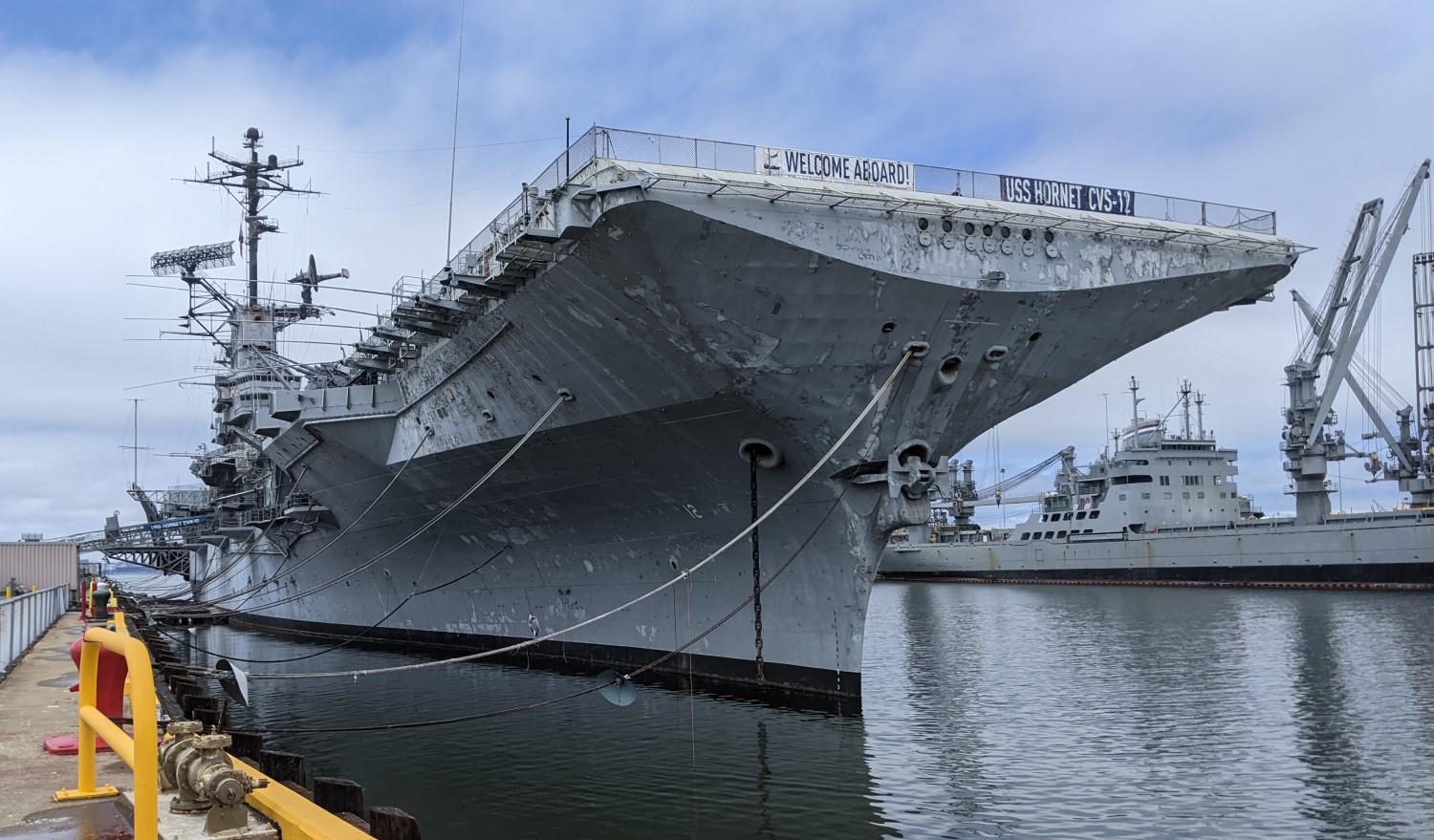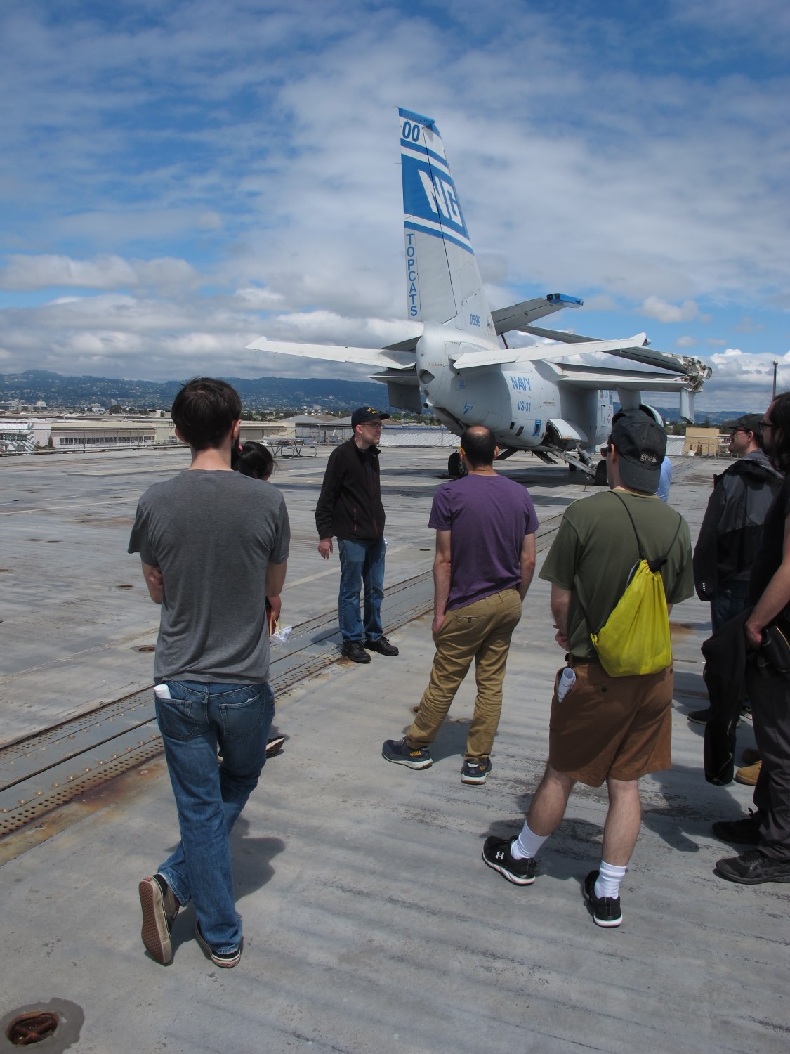 After the main DSL meetup officially finished, I organized the last museum ship visit of the trip, to the aircraft carrier Hornet in Alameda.1 Knowing that this would be a bigger ship, and easier to take a group through, I opened it up, announcing it both here and via the rationalist group meetup system, which brought 8 or so people I'd never met out of the woodwork. Add on cassander, Garrett, Evan and CatCube, and it was a good-size group.