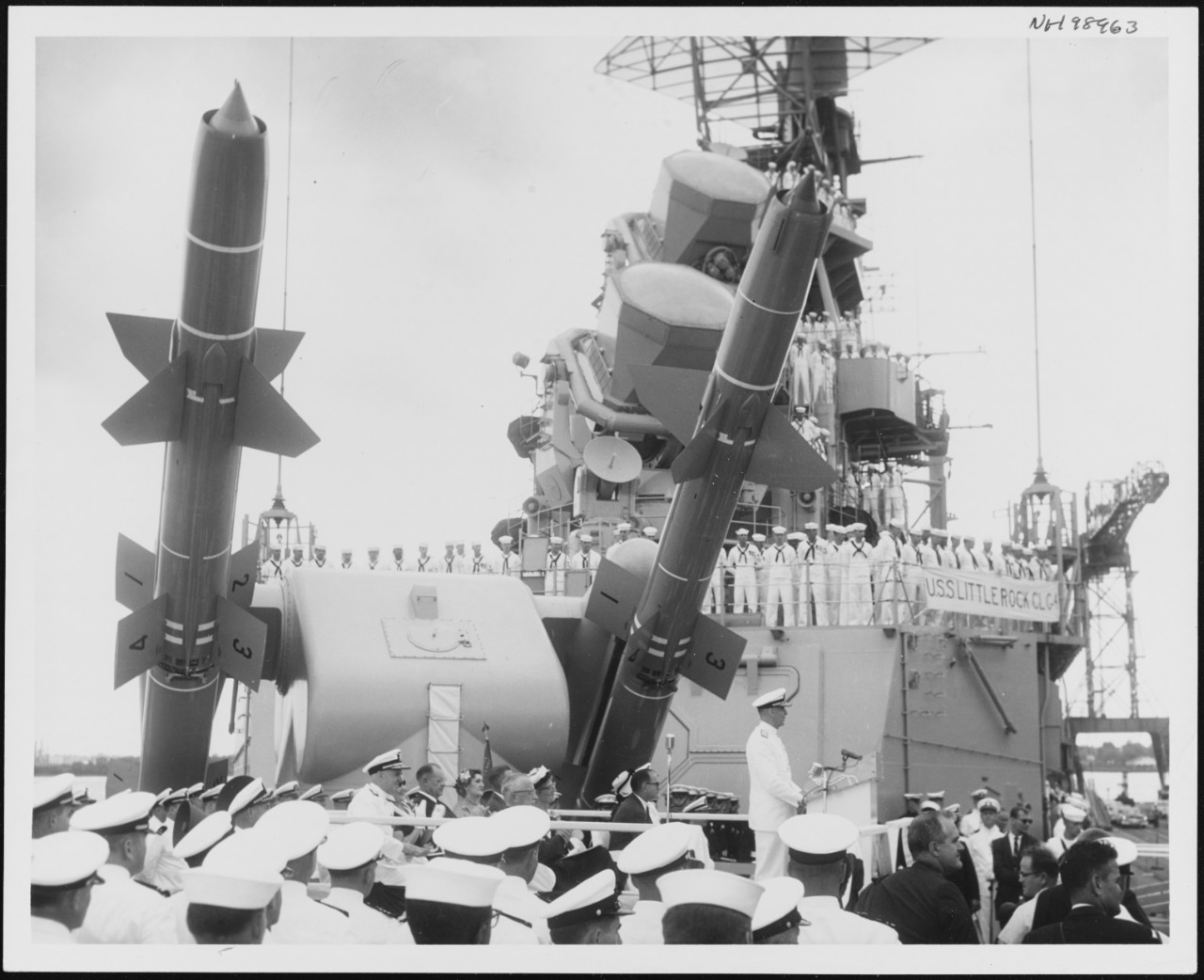 Little Rock displays one conventional and one nuclear Talos at her commissioning