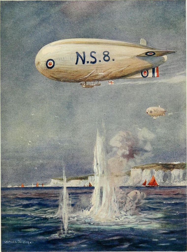 Although the German Zeppelins get the majority of attention, they were far from the only naval airships used during WWI. The British, after being burned by Mayfly, switched their efforts to non-rigid airships, which are held in shape by gas pressure. The first was bought before WWI, but most effort was focused on heavier-than-air craft. When war broke out, there was an immediate need for longer-duration surveillance than airplanes could achieve, and the first SS class blimp1 was created by hanging the fuselage of a BE.2 airplane beneath the envelope from an earlier airship. 59 more followed, 14 of which went to France and Italy, each with a crew of two and the capability to carry 160 lb of bombs. They proved very effective as escorts for coastal convoys, able to stay in the air for up to 12 hours. None were able to successfully sink a U-boat, but they were invaluable for spotting them closing in and vectoring in the escort. U-boats were obviously reluctant to surface when airships were nearby, and from mid-1915 onward, only two ships were sunk in convoys protected by airship.