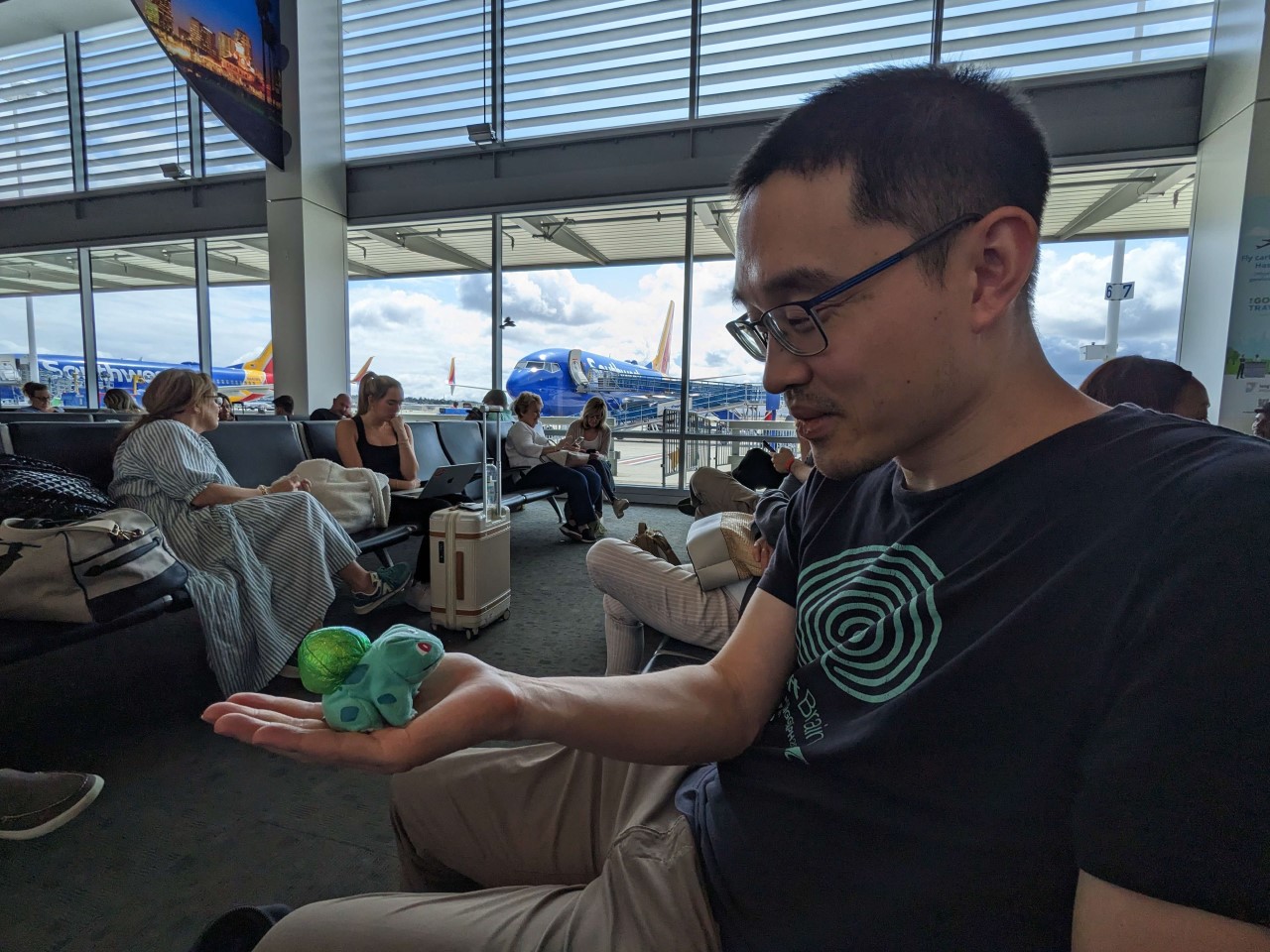 Bulbasaur liked talking with Albert just before he got on the plane.