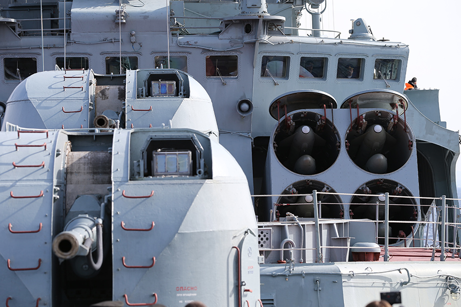 SS-N-14 missiles in their launch tubes on a Russian destroyer