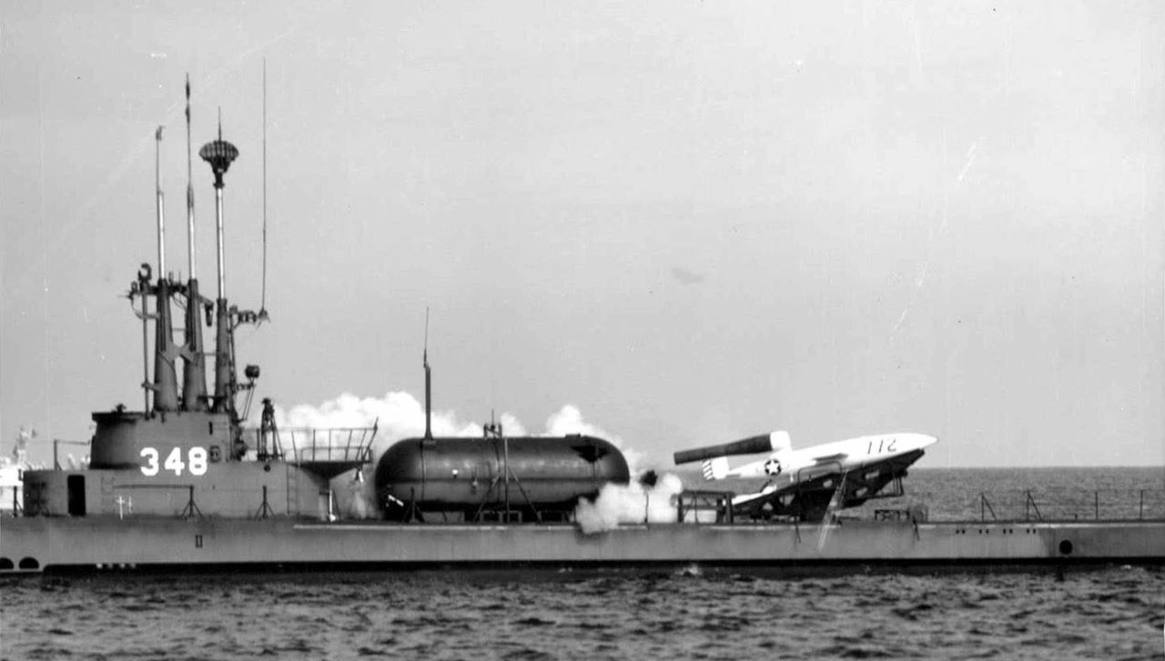 But even as the T-15 died, nuclear cruise missile programs were alive and well on both sides of the Iron Curtain.1 American cruise missile programs had begun in 1944, with the capture of German V-1 components, which led to the creation of an American copy, the JB-2. Thousands of JB-2s were ordered to aid in the bombardment leading up to the planned invasion of Japan, then cancelled when Japan surrendered. The leftovers were useful in the development of cruise missile technology. The Navy decided it was time to investigate submarine-launched cruise missiles, and in early 1947, the ex-fleet submarine Cusk launched the first JB-2, which the Navy called the Loon. She and her sister Carbonero carried out numerous firings over the next few years, gaining valuable experience that would be applied to the operational cruise missile the USN was developing, known as Regulus.