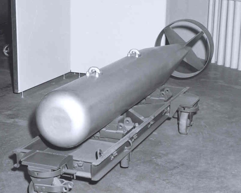 The Navy proposed that a penetrating bomb be developed, which could be dropped on a target, pierce earth or concrete, and then be set off by a time fuze once the attacking aircraft was safely away. This was opposed by the Air Force and most of the atomic establishment for two reasons. First, the heated interservice politics of the day made any form of cooperation unlikely. Second, the implosion designs of the day were too fragile to survive impact and penetration, and so the new weapon would need to use the gun-type design pioneered by Little Boy, which required enough Uranium to produce three implosion bombs. Despite these obstacles, the Navy perservered and produced the Mk 8, handling development of most of the non-nuclear components itself. Only 40 of these weapons were produced,4 and the plan if they were used was to drop them into the water off the entrance of the submarine pen, presumably to add massive contamination to the physical destruction wrought by the bomb.