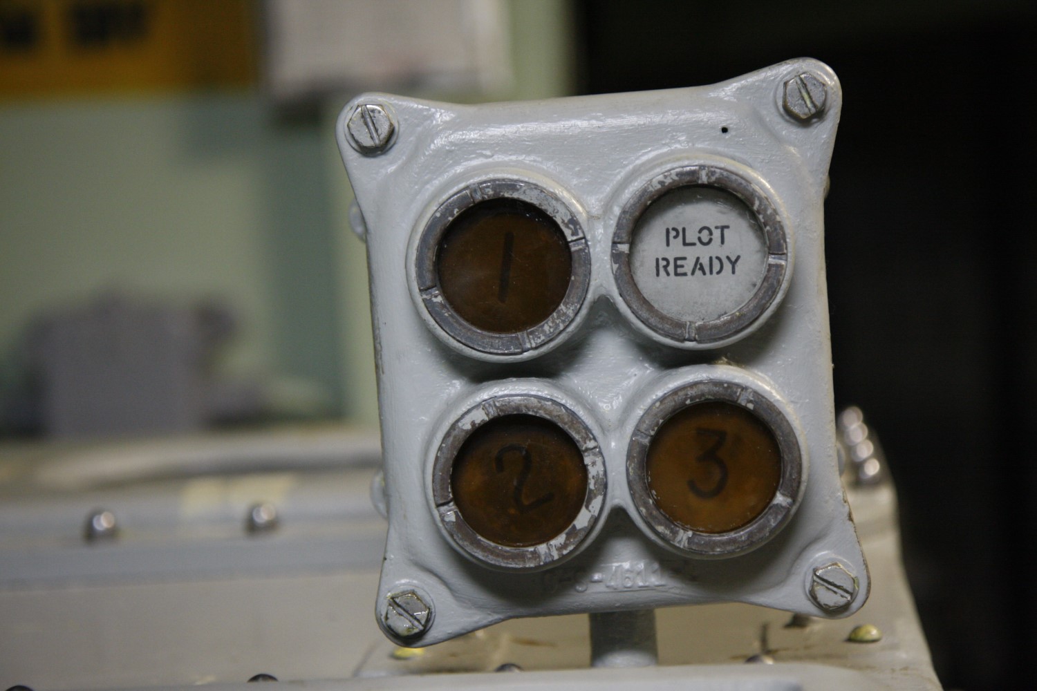 It's finally time for our long-running photo tour of Iowa to reach my favorite space, the plotting rooms. The main and secondary battery computers are in separate, adjoining spaces, and can be visited on special tours. I'm usually too busy with certain activities (seen below) to take many pictures, so these were taken over half a dozen visits.