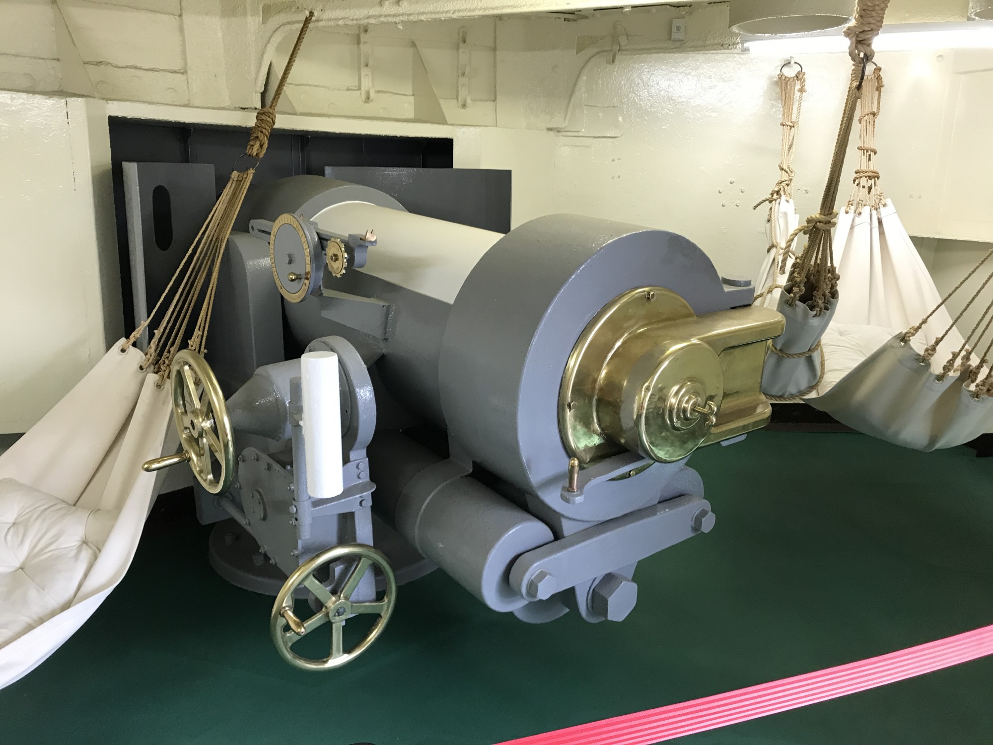 One notable feature is these vents into the officer's quarters. Mikasa was built before modern ventilation systems, and these were used to provide fresh air in good weather, but could be locked down if conditions worsened.