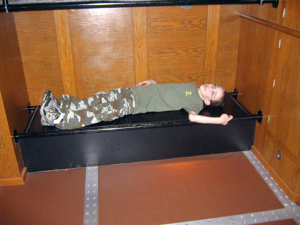 Me demonstrating the size of the bunks. It's less effective than it should be, because I was really small at the time.3